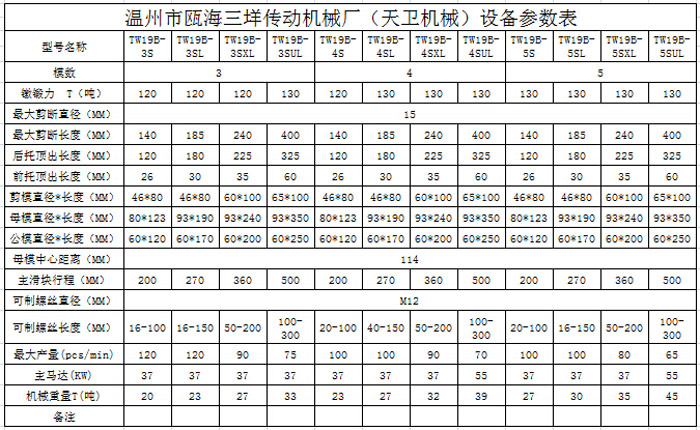您當前的位置:首頁 / 產(chǎn)品中心 / 三模三沖冷鐓機 / └ TW19B(M12)多工位冷鐓機 / TW19B三模三沖多工位冷鐓機