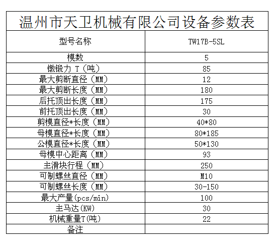 您當前的位置:首頁 / 產(chǎn)品中心 / 五模五沖多工位冷鐓機 / └ TW17B(M10)多工位冷鐓機 / TW17B-5SL全自動多工位冷鐓機